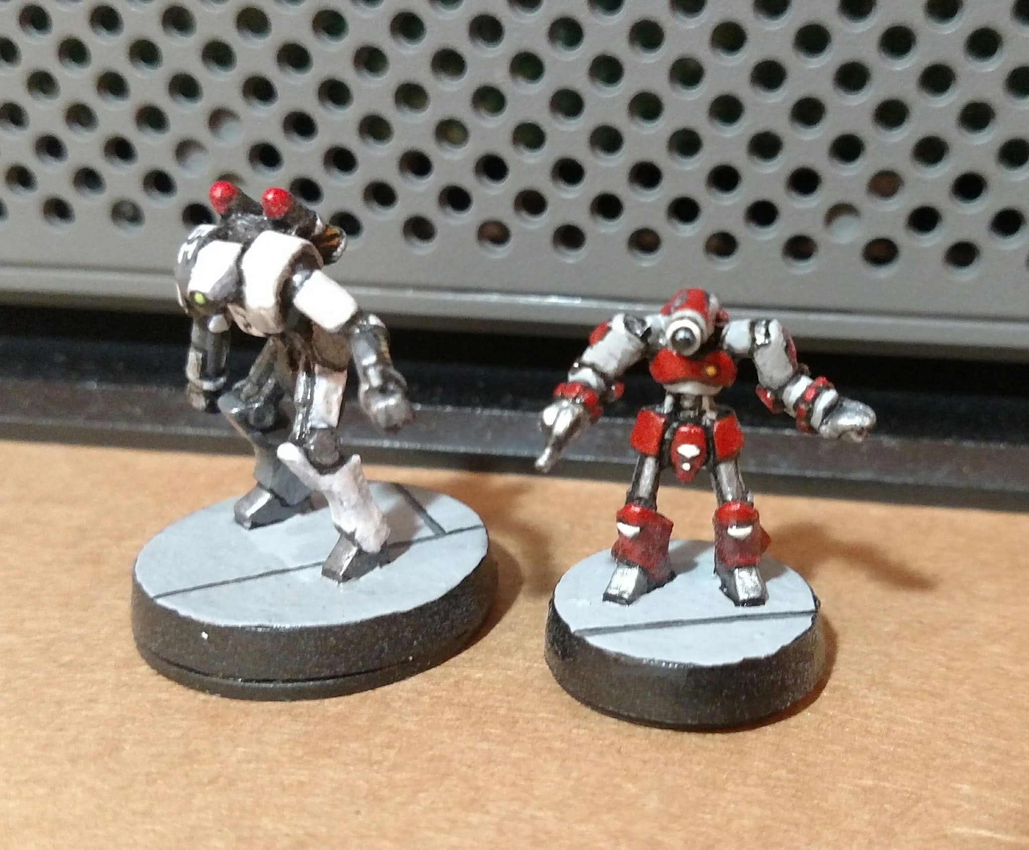EM-1LY (left) and T1D-B1T (right) are Martya and MH's robotic "kids". EM-1LY is the solid, reliable one, while T1D-B1T tends to wander off and get into mischief. (Figures are Medium and Small XairBots)